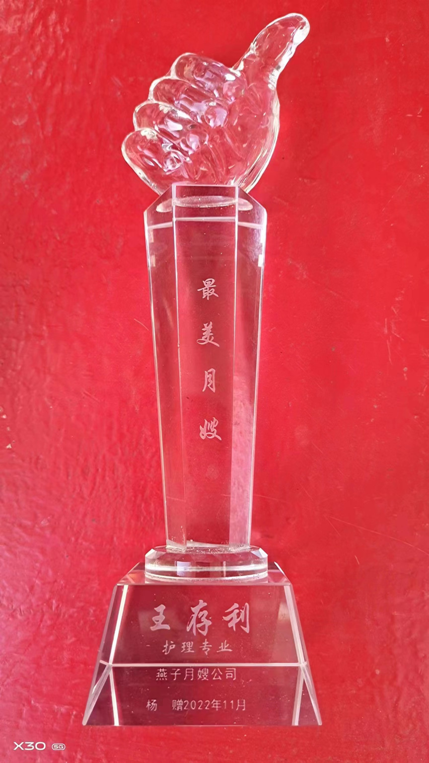感謝月嫂王存利姐姐在二十多天來對我和嬰兒的精心照顧,讓我安心舒適的度過了整個月子。