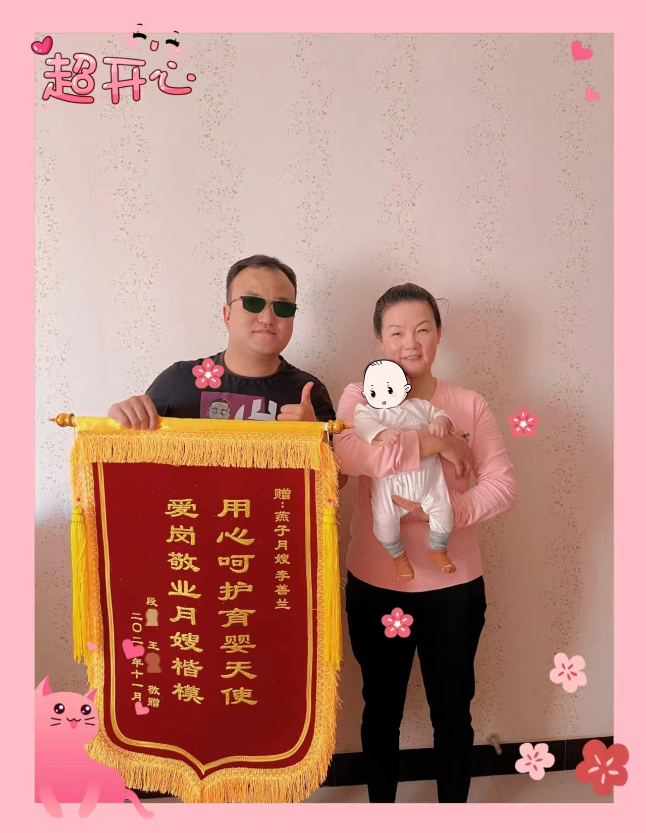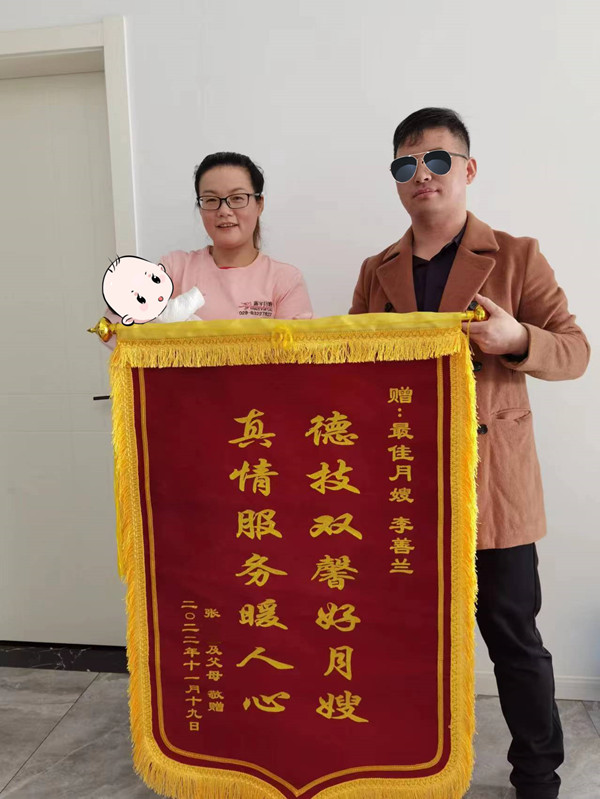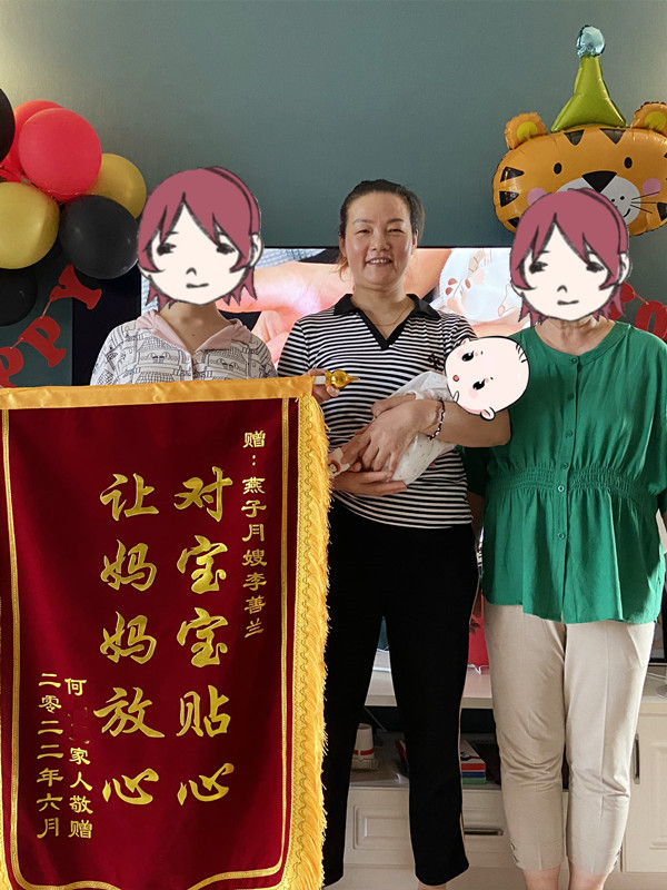 李阿姨和我家人相處也很融洽,這短短19天中我們?nèi)叶己軡M意她的工作也深深感受到了她的專業(yè),高度的責(zé)任心和愛心,最后,感謝李阿姨陪我度過了我人生中的如此重要的一個階段。祝愿李阿姨身體健康,萬事勝意!