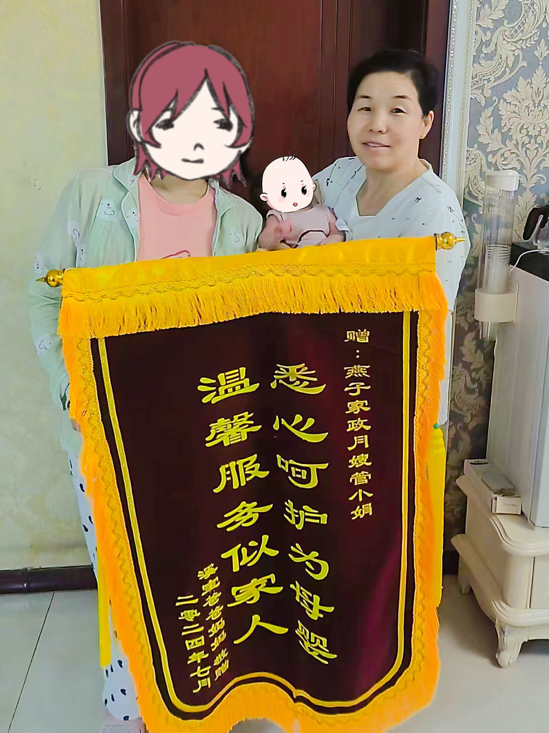 因?yàn)槲覀€人身體的原因,有段時間連床都起不來,疼痛難忍,感謝西安燕子月嫂管姐那段時間對我細(xì)心的照顧,心情不好時陪我說話、聊天。家里來人時,非常有眼力勁,還幫忙招呼客人,得到了大家的一致好評!下次生二胎,還喊西安燕子月嫂的管姐來!